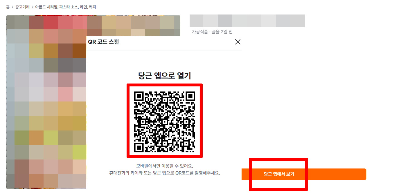 대신 “당근 앱에서 보기” 버튼을 누르면